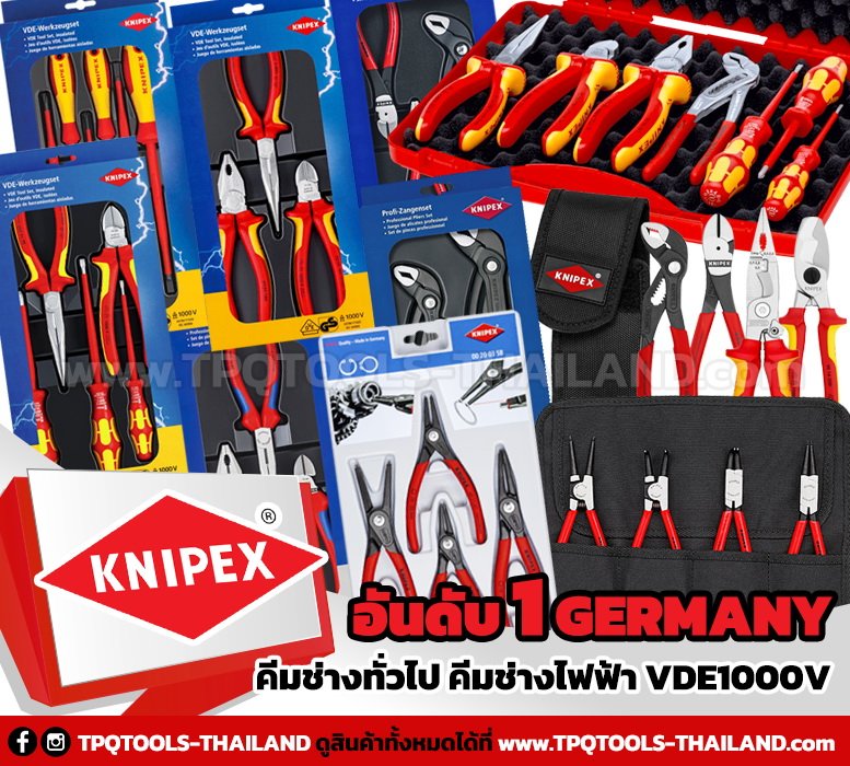 | Knipex | เยอรมนี | คีม | แข็งแรง ทดแรงดี อายุใช้งานยาว | งานไฟฟ้า อุตสาหกรรม |