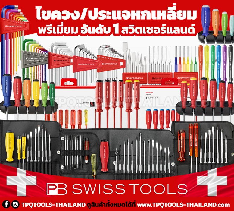 PB Swiss Tools เป็นแบรนด์เครื่องมือพรีเมียมจากสวิตเซอร์แลนด์ มีชื่อเสียงด้านความแม่นยำและการควบคุมคุณภาพสูงสุด อาทิเช่น ไขควง ประแจหกเหลี่ยม เหล็กส่ง เหล็กสกัด