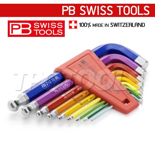 PB212H10RB ชุดประแจหกเหลี่ยมแบบสั้นหัวบอล สีรุ้ง ขนาด 1.5-10 มม. (9 ตัวชุด) PB SWISS TOOLS