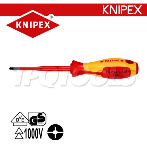 KNIPEX 982502SLS ไขควงแกนสลิมปาก PZ+แบน ขนาดหัว PZ/S2x100x212 มม. (หัวไขควง+ความยาวแกน+ความยาวทั้งตัว) VDE1000V ด้ามฉนวนการไฟฟ้า KNIPEX คะนิเพค คีมช่างมืออาชีพอันดับ 1 MADE IN GERMANY