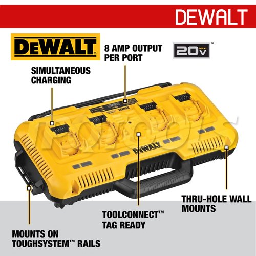 สำหรับแบตเตอรี่ 10.8V/12V XR, 18V XR และ XR FLEXVOLT ชาร์จแบตเตอรี่ 4 ก้อนได้อย่างรวดเร็วพร้อมกัน กระแสไฟขาออก 8A ต่อพอร์ต ปรับกระแสชาร์จตามความจุแบต