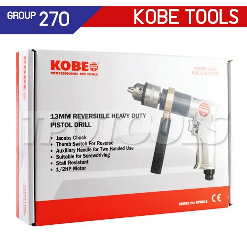 KBE2701525F (DPR813) "KOBE" สว่านลมทรงปืน 13 มม. ปรับซ้าย-ขวา รุ่นงานหนัก REVERSIBLE HEAVY DUTY PISTOL DRILL "KOBETOOLS" สินค้าประเทศอังกฤษ